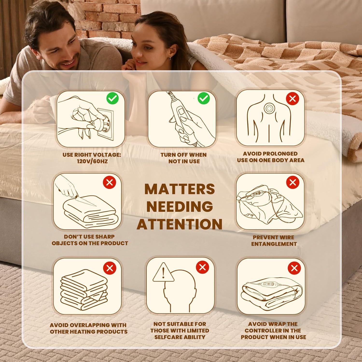 [Easy Care and Elegant Gift Packaging] Keeping your heated blanket fresh and clean is a breeze, as it’s machine washable for your convenience. Plus, it arrives beautifully packaged in a thoughtfully designed gift box, making it a perfect present for anyone who feels the cold.