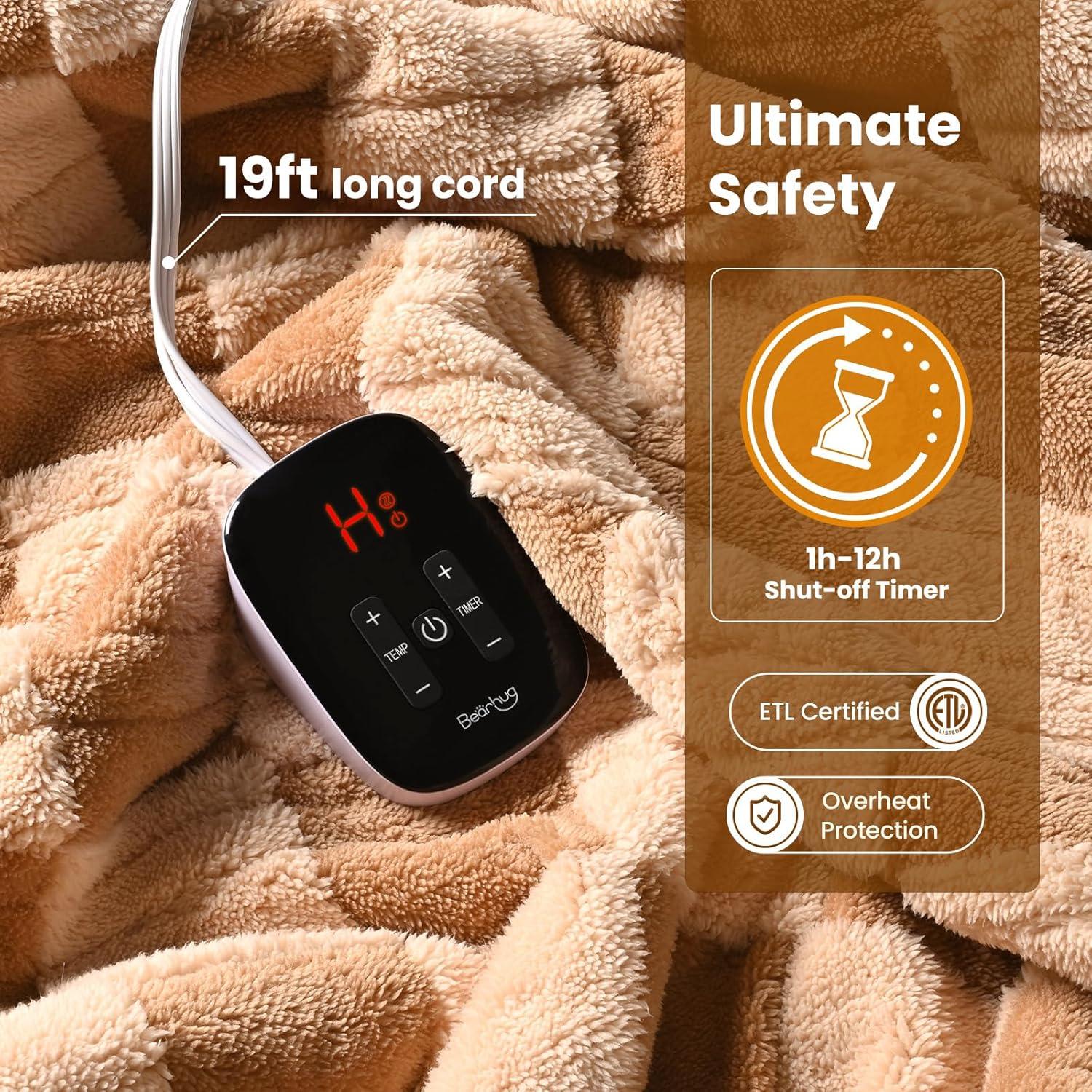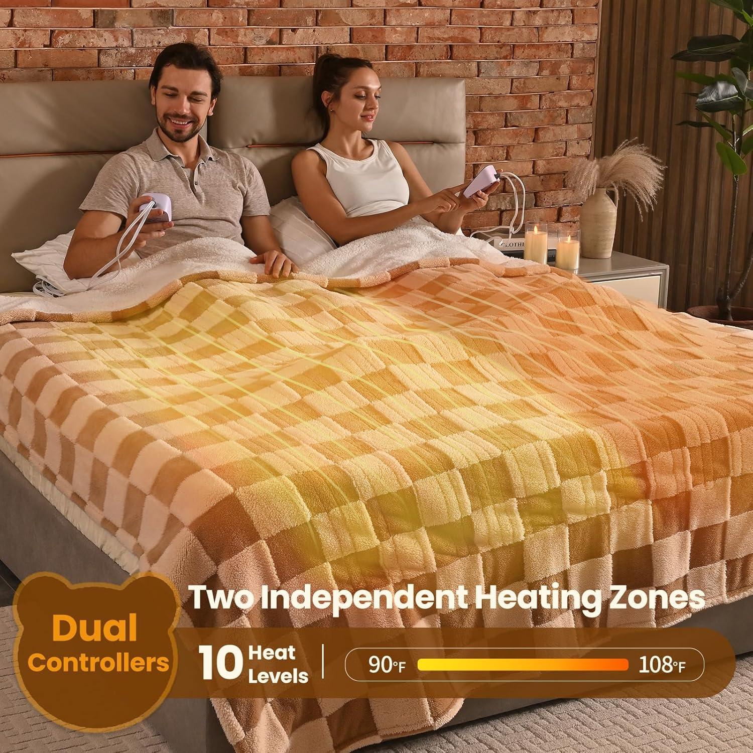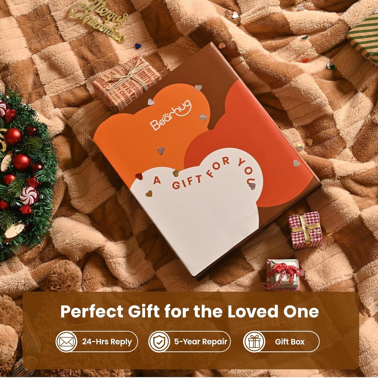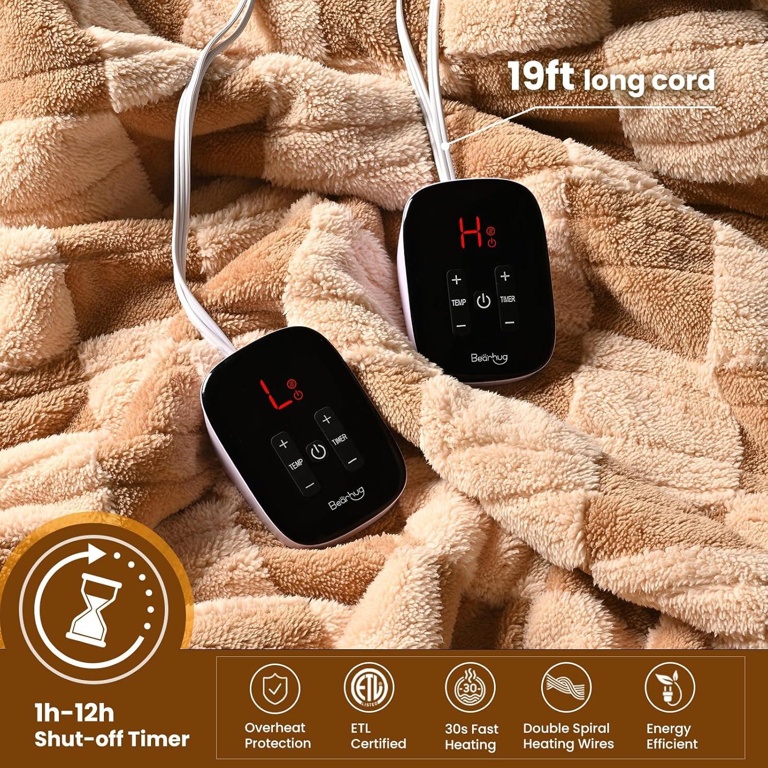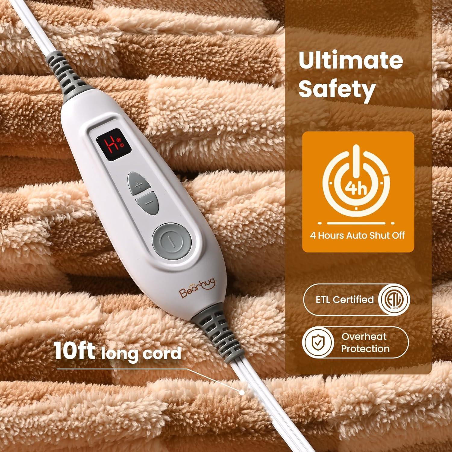 [Dual Independent Heating Zones for Personalized Comfort] The Bearhug heated blanket features dual heating zones, allowing you to customize your warmth with 10 temperature settings (90°F-108°F).