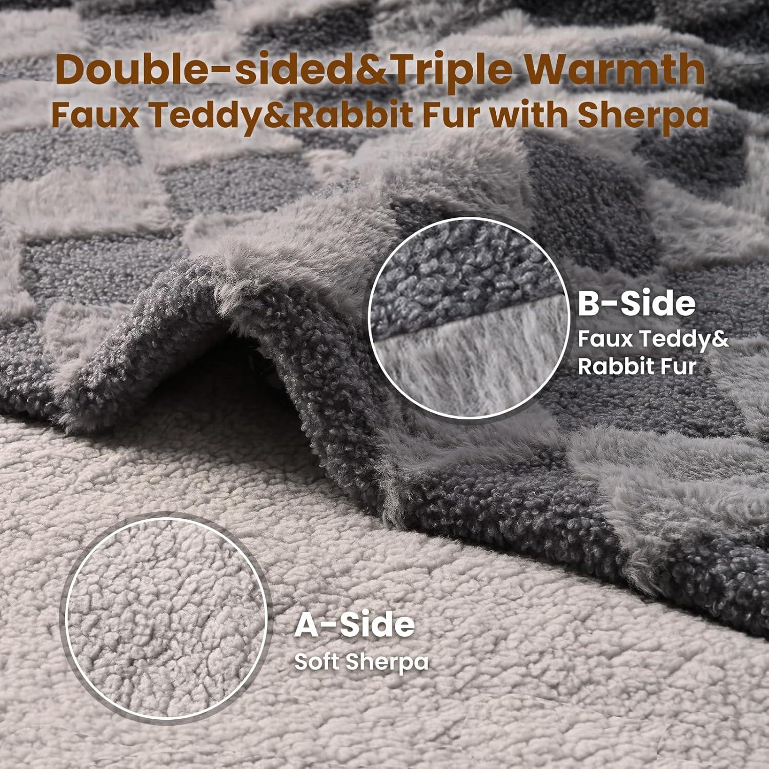 [Luxurious Teddy Faux Fur and Sherpa] The heated throw is made of 320gsm teddy faux fur front and the softness of the 200gsm sherpa reverse, creating a plush and inviting surface for the ultimate relaxation experience.